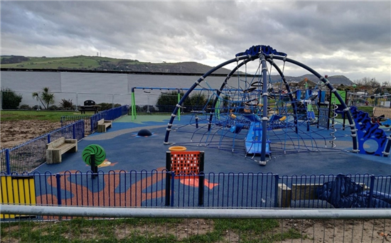 KOMPAN fu’n gyfrifol am wneud y gwaith o ailddatblygu’r ardal chwarae ar ôl cael eu briffio gan swyddogion y Cyngor a oedd yn awyddus i gydnabod lleoliad glan môr y safle.