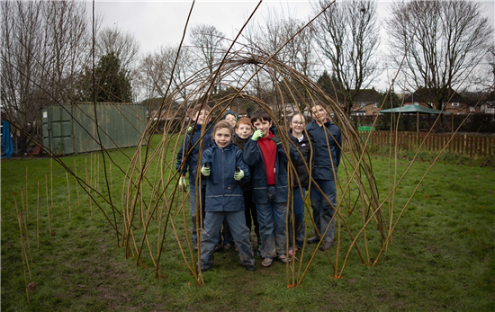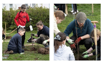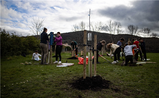 Mae disgyblion wedi bod yn brysur yn creu cynefin newydd ar gyfer natur ar dir yr ysgol, gan gynnwys gwrychoedd, coed safonol, a pherllan.