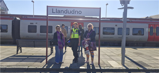 Cafodd y sesiynau eu cryfhau ymhellach drwy gydweithio gyda Heddlu Trafnidiaeth Prydeinig. Fe fynychodd Andrea Platt, Swyddog Cymorth Cymunedol yr Heddlu, y sesiwn gyntaf i rannu gwybodaeth am rôl Heddlu Trafnidiaeth Prydeinig yn cadw teithwyr a’r rhwydwaith rheilffyrdd yn ddiogel. Roedd ei rôl yn ymwneud â meithrin ymddiriedaeth gyda chyfranogwyr, cynyddu eu hyder, a mynd i’r afael â phryderon cyffredin ynghylch teithio ar drên. Fe deithiodd Andrea Platt, Swyddog Cymorth Cymunedol yr Heddlu gyda’r grŵp ar eu sesiwn olaf, gan gynnig arweiniad a chefnogaeth yn y fan a’r lle, gan roi cyfle gwirioneddol i’r criw deithio’n hyderus.