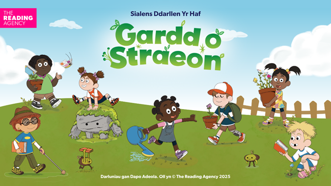 Yn cynnwys darluniadau hardd gan yr artist sydd wedi ennill gwobrau, Dapo Adeola, mae Gardd o Straeon yn cynnig byd o straeon, creaduriaid ac anturiaethau sy’n seiliedig ar natur i ddarllenwyr ifanc. Gall plant gasglu pecynnau gweithgareddau am ddim, cymryd rhan mewn digwyddiadau ar thema natur, a benthyg llyfrau penodol - y cyfan wedi eu dylunio i’w cadw’n chwilfrydig, yn weithgar, ac pharhau i ddarllen dros wyliau’r haf.