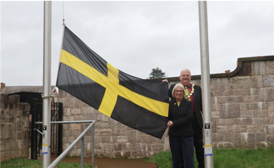 I ddathlu Dydd Gŵyl Dewi sydd ar Fawrth 1, ymunodd Is-gadeirydd Bobby Feeley â Chadeirydd y Cyngor Arwel Roberts i godi baner Dewi Sant yn Neuadd y Sir, Rhuthun.