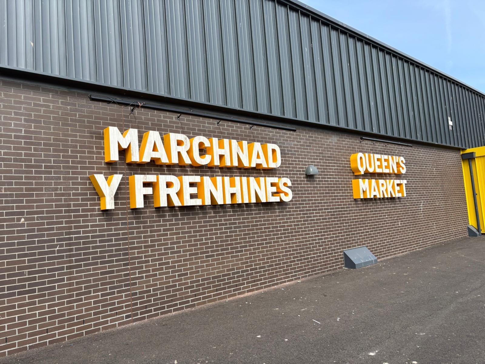 Gwaith arwyddion allanol Marchnad y Frenhines wedi'i gwblhau