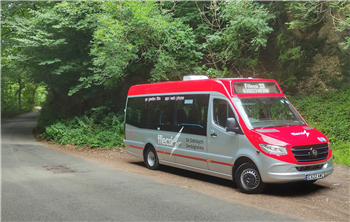 Gwasanaethau hyblyg wedi’u pweru gan drydan yn cludo trigolion lleol dros filoedd o filltiroedd