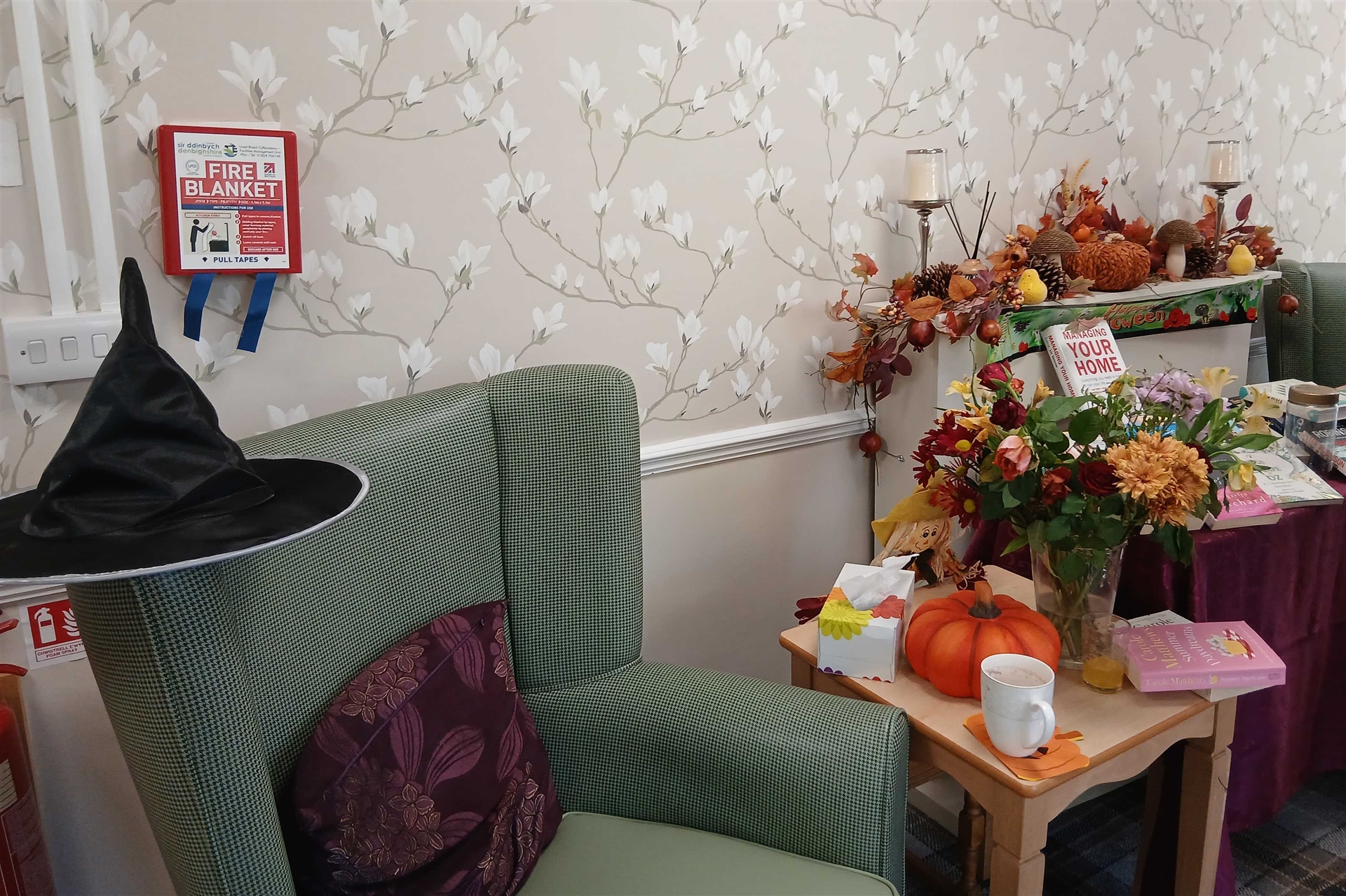 Mae’r preswylwyr bob amser yn edrych ymlaen at y ffair hon, gyda’r cartref wedi’i addurno ag addurniadau a lliwiau’r Hydref i ddathlu. Cawsom ni gynulliad gwych eleni, gyda’r elw o’r diwrnod yn mynd tuag at gronfa gysur y preswylwyr a hefyd at ddiffibrilwyr Dinbych.