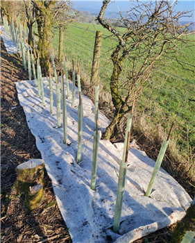 To help the newly planted trees establish, the team used mulch matting made from British wool to supress competing weeds and help retain the moisture in the soil.