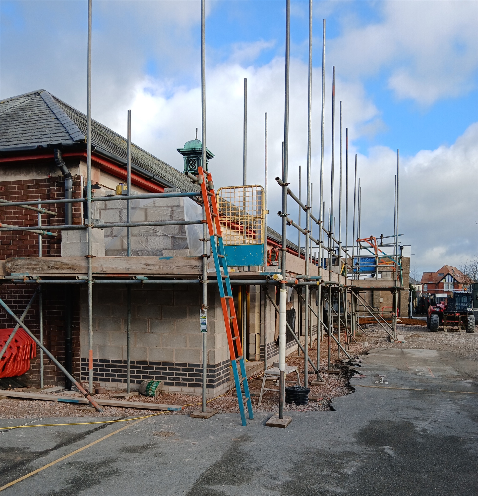 Recent work on the Ysgol y Castell classroom extension project has seen advancements in the first two classrooms, with scaffolding now in place for the continuation of the work into this year.