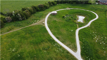 Hedgerows planted are growing strong at the site alongside colourful wildflower meadows. Walking around you can take advantage of seating areas introduced in the area.