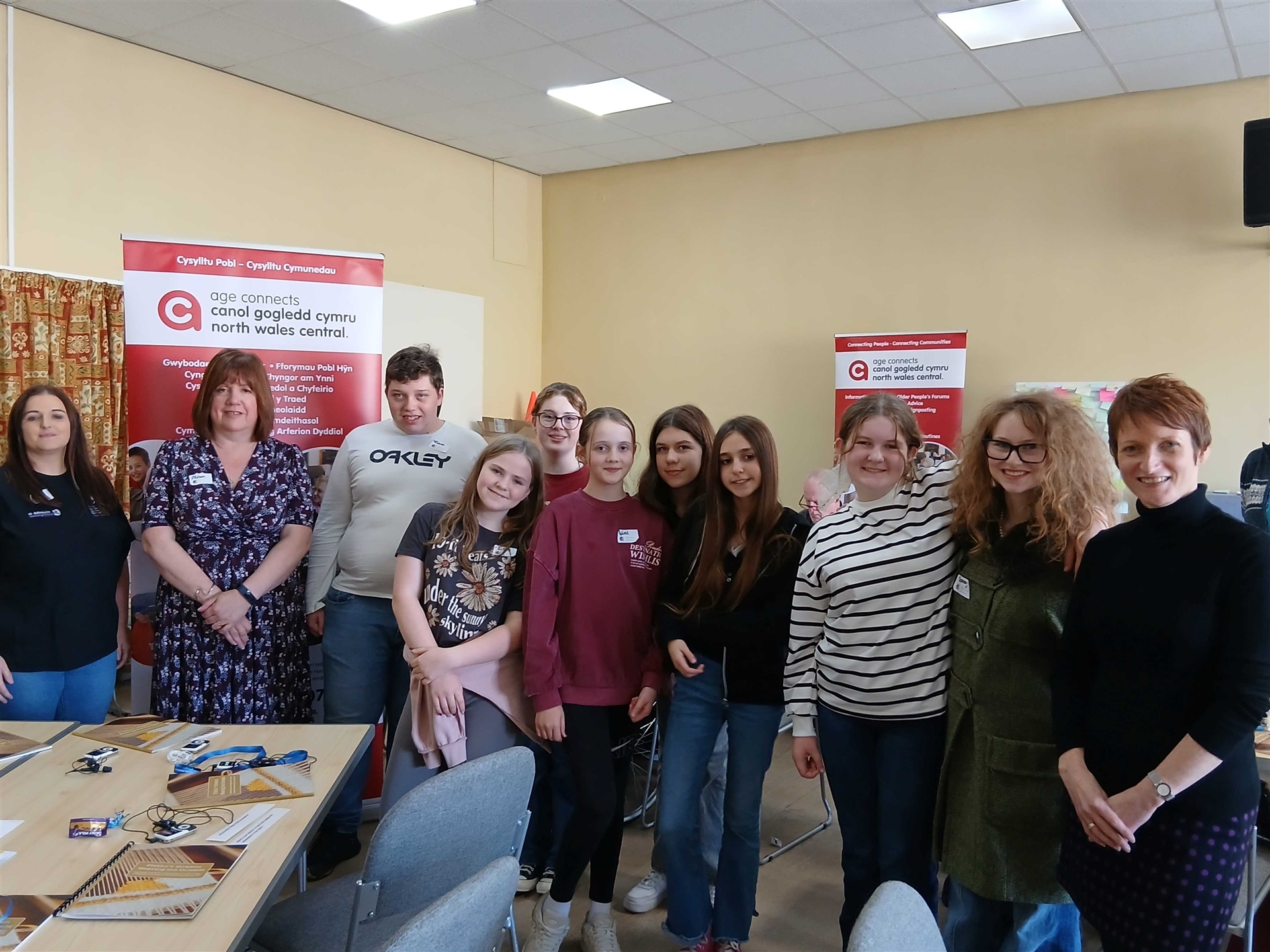 Commissioner with Youth Club Members and Alison Price, Chief Executive, Age Connects North Wales Central.