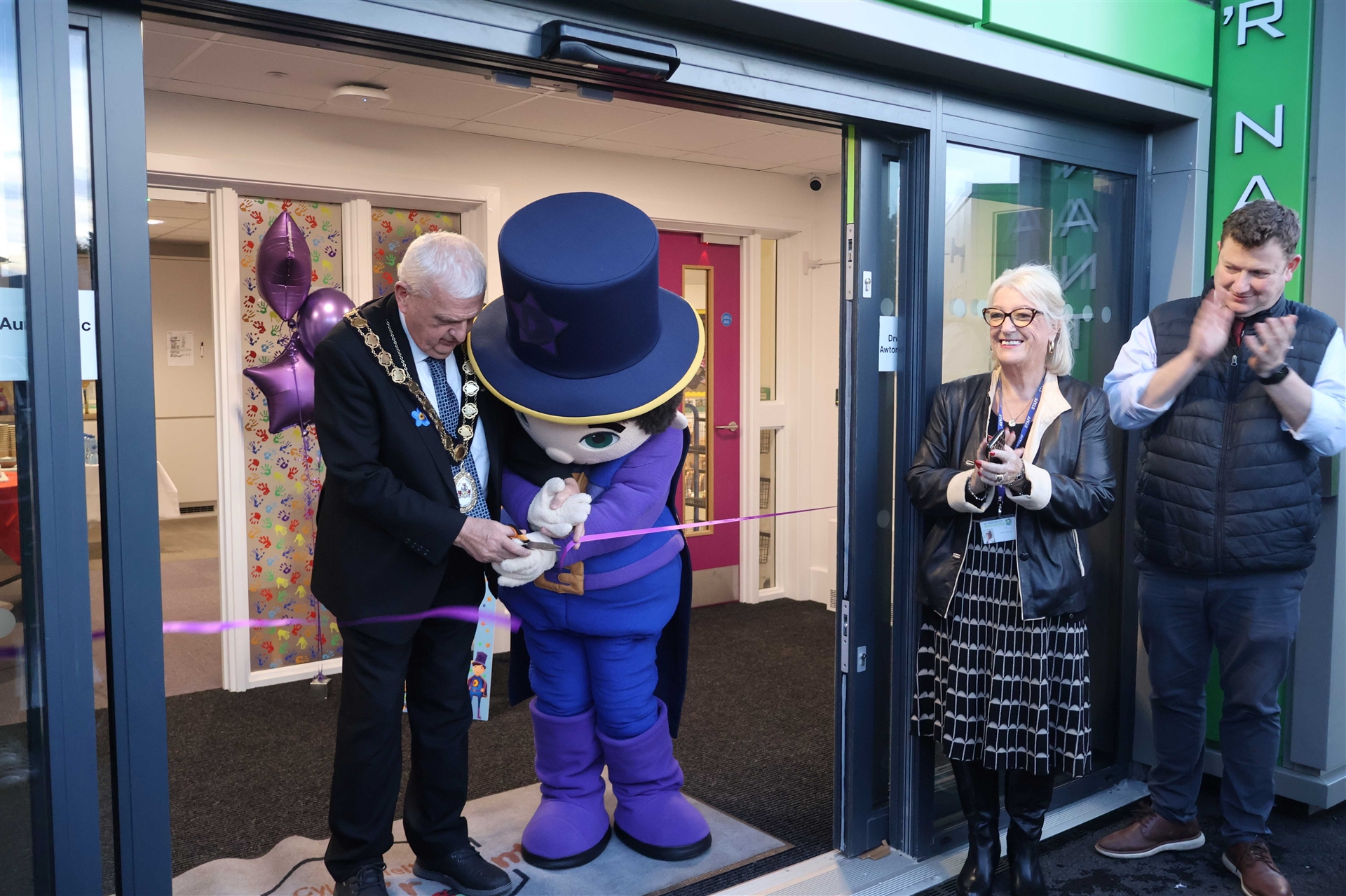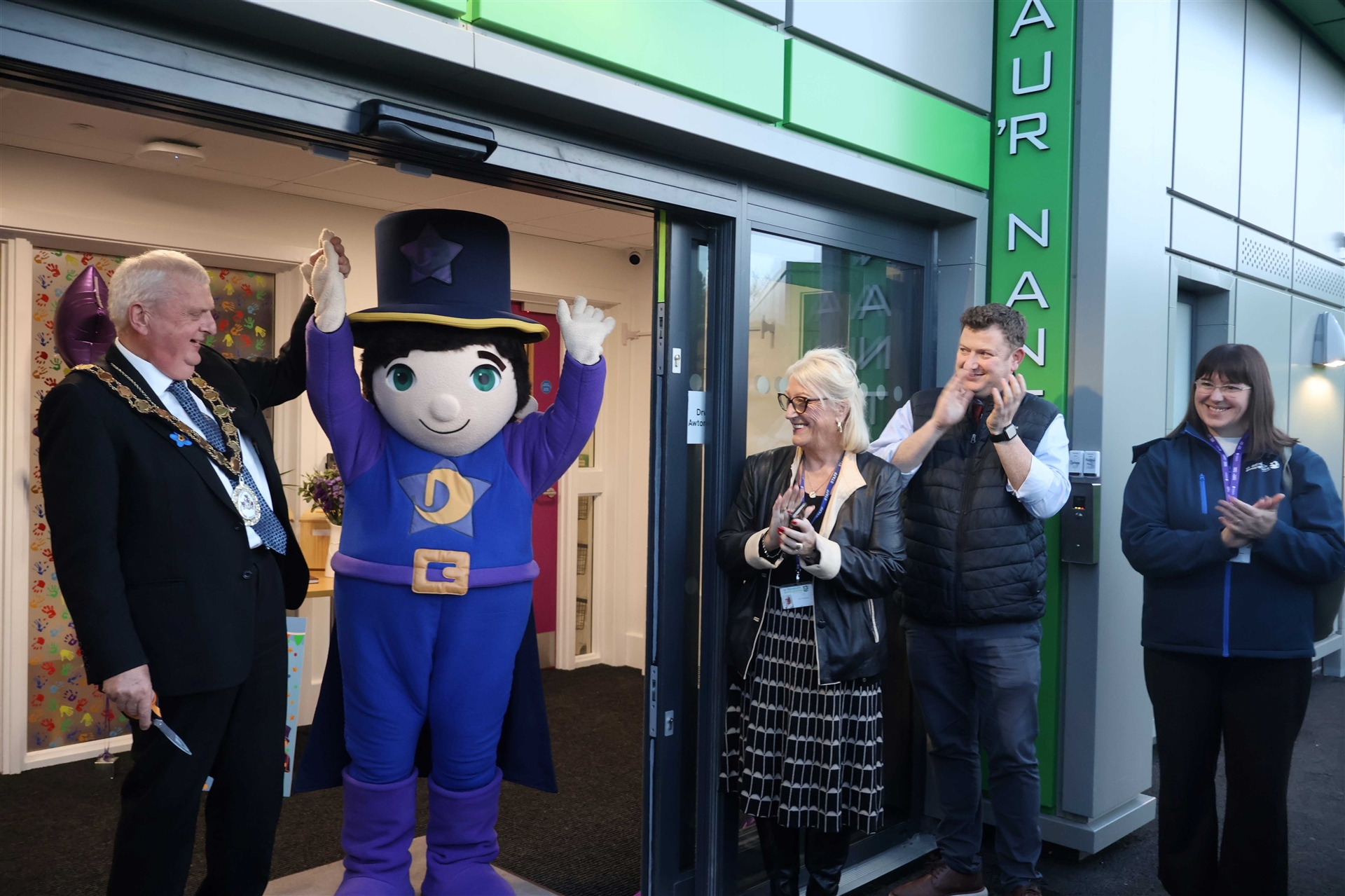 Ysgol Twm o’r Nant’s new childcare facility building was officially opened by the Chair of the Council, Councillor Arwel Roberts last week, on Thursday, 13th of November.