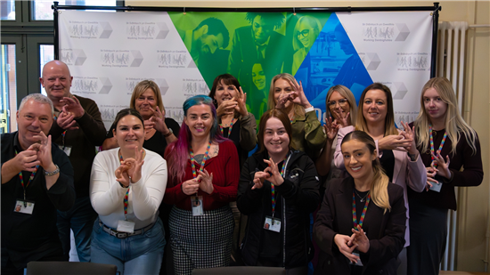 The Working Denbighshire team signing the word 'connect' [British Sign Language]