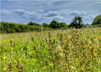 The site was treated with locally sourced Yellow Rattle seeds. Yellow rattle is a parasitic plant, tapping in to the roots of grasses and other neighbouring plants and stealing their nutrients. This reduces the dominance of grasses within a meadow, allowing more native wildflowers to take hold.