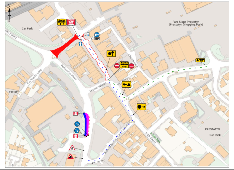 Throughout the project, pedestrian access will be managed, temporary ramps will be provided for accessibility, clear signage and secure barriers will be in place. Any issues can be relayed to either the Public Liaison Officer RuthinEnquiries@obrconstruction.com or the Project Team corporateprogrammeoffice@denbighshire.gov.uk.